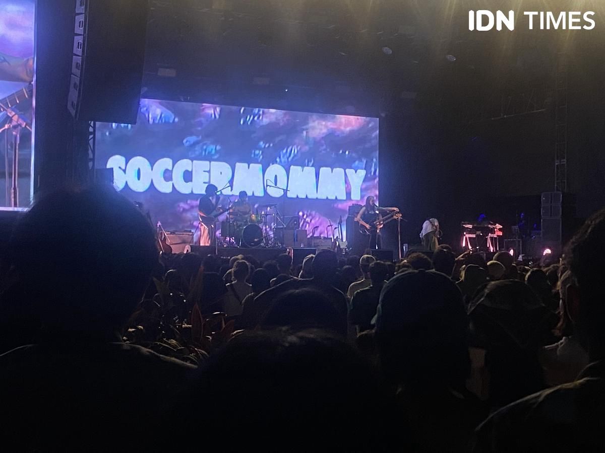 Beberapa jam kemudian, suasana berubah ketika Soccer Mommy (Sophia Regina Allison) mengambil alih panggung. Corak musik indie rock-nya mengalir dengan konsistensi yang tegas dan jujur. Gitarnya menyayat lembut, dan vokalnya yang tenang menggulung kerumunan ke dalam gelombang nostalgia. Dari atas panggung, ia menyajikan lagu-lagu yang selama ini banyak menemani pendengar di perjalanan pulang, saat hujan turun, atau ketika ingin berhenti sejenak dari hiruk-pikuk hari, seperti Circle The Drain, Shotgun, hingga Your Dog. Penonton mengangguk mengikuti tempo, seolah ikut masuk ke ruang sunyi yang hanya dimiliki Soccer Mommy.